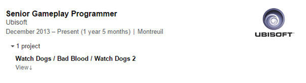 Сегодня же возможное подтверждение уже начавшихся работ над Watch Dogs 2 появилось в резюме одного из работников Ubisoft. Жюльен Рисс (Julien Risse), один из ведущих программистов, работавших над оригинальной игрой, указал на ресурсе LinkedIn Watch Dogs 2 как один из проектов, над которыми он трудился.